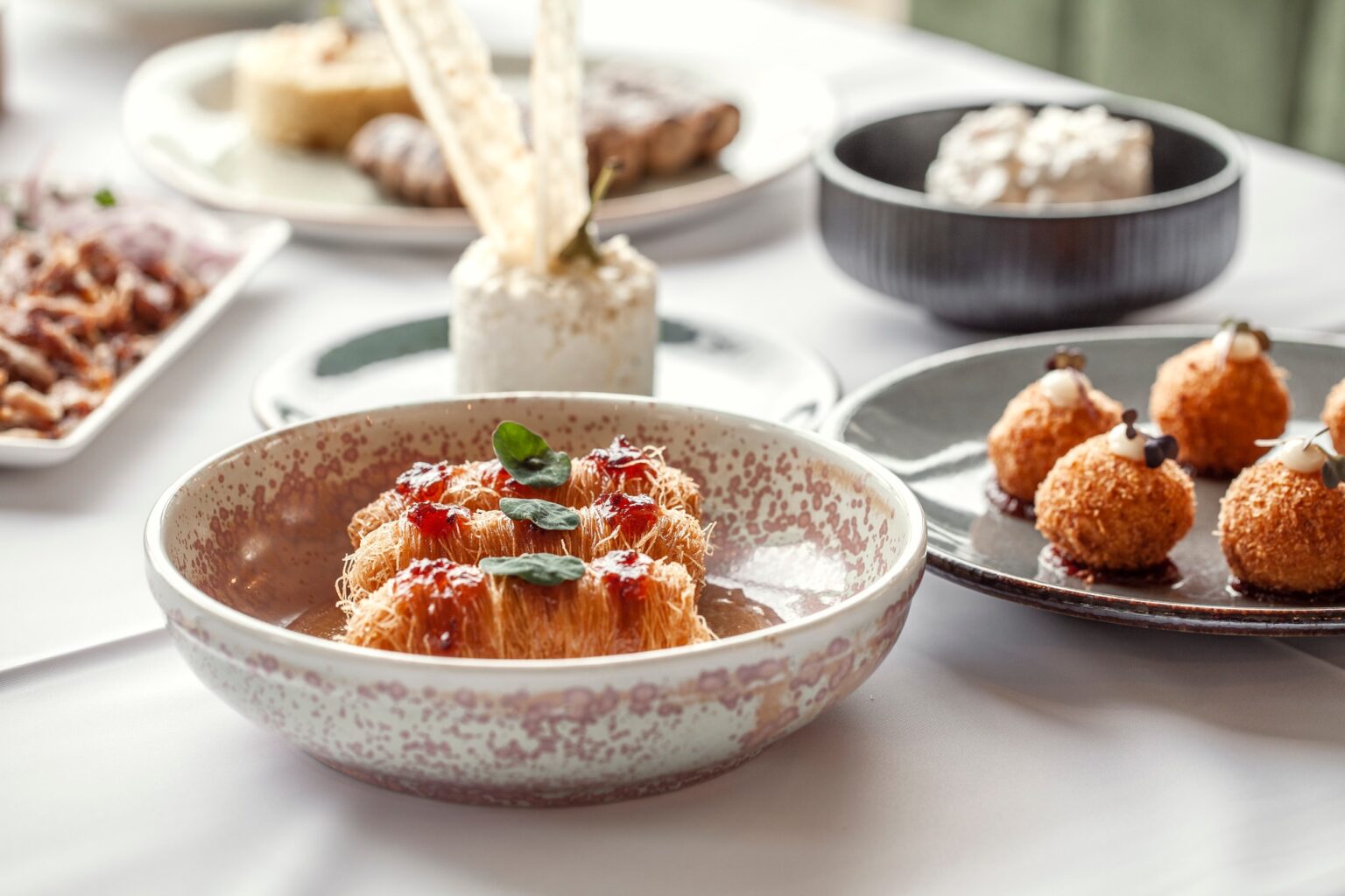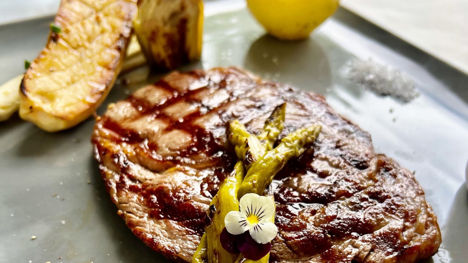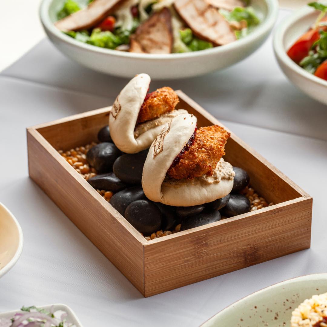 The menu includes meat dishes as well as handmade appetizers and salads made with pure ingredients from small producers. Among the appetizers we singled out the Loukoumadakia with Mastelo of Chios, smoked Metsovo cheese and feta cheese served with Cretan tomato chutney and mastic mayonnaise as well as the Thessaloniki Tyrokauteri with various white cheeses, hot pepper, vinegar and crispy dough leaves which perfectly accompanies the meats. We were also impressed by the Cretan Bao Buns with steamed buns with crispy Cretan handmade chicken apaki, tofu cream, Japanese salt and cranberry jam.
