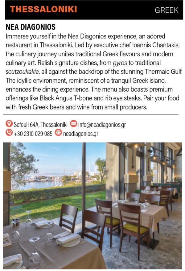 Nea Diagonios had the honor of being on the special "Destination Dining" page of "Business Traveler U.K.". See the post and the link https://www.businesstraveller.com/features/destination-dining/